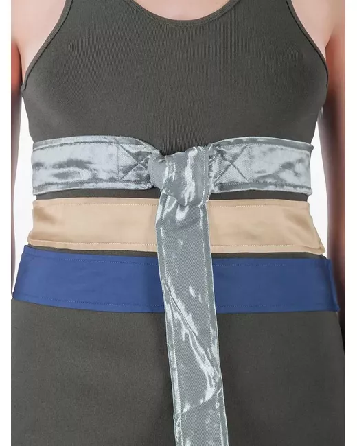 brown racerback design satin belt multicoloured striped belt metallic ring belt closure Condition: GOOD. This previously owned and used item is in good condition with minimal signs of use. This may include fading of material or plating and scratches.