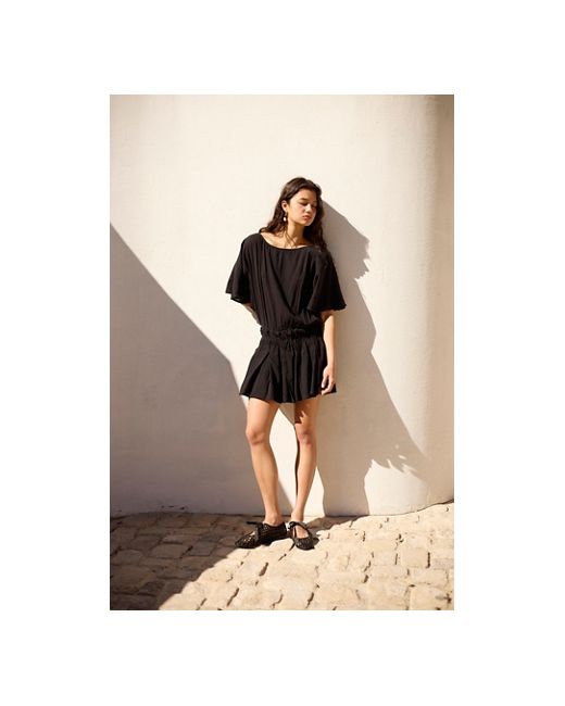 A throw-on-and-go staple from our free-est collection, this classic mini has endless ways to wear. **Fit:** Loose, billowy fit throughout with cinched waistline **Features:** Wide boat neckline, crepey textured fabrication, draped flutter sleeves, tiered smocking at the waistband, lined **Why We ❤ It:** Sleek with tall boots or off-duty with ballet flats, you'll reach for this from this season to the next. Sutton Mini by free-est at Free People in Black, Size: XS