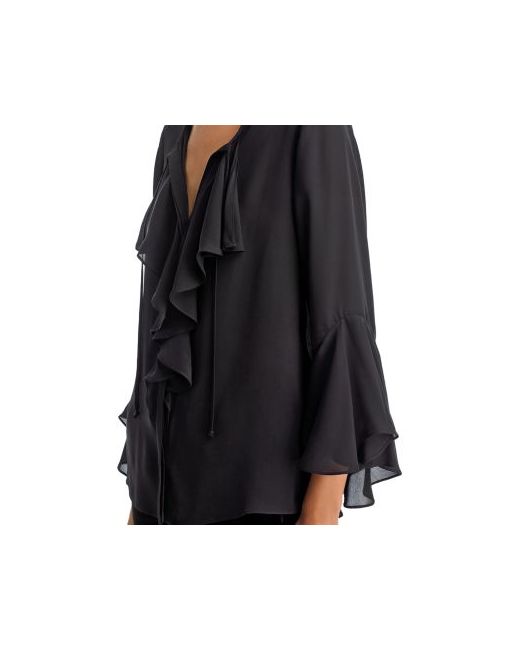 Kobi Halperin Turner Silk Ruffle Blouse.Color:Black.Size:XS.Material:100% silk.Tops.