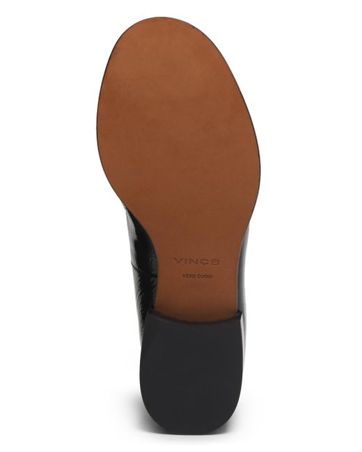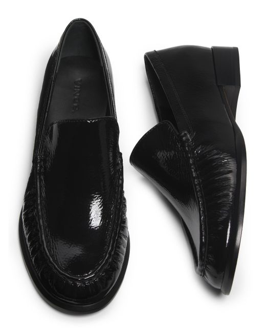 Vince's Nora is a modern update to the classic loafer silhouette, finished with ruched detailing around the moc toe. Made with responsibly tanned leather Moc toe Slips on Patent leather upper Leather lining Leather sole Imported SIZE Stacked heel: about 0.75" (20 mm) This brand fits slightly larger. Consider ordering a half size down. Women's Shoes - Contemporary Shoes > Vince > Saks Fifth Avenue. Vince. Color: Black. Size: 5.