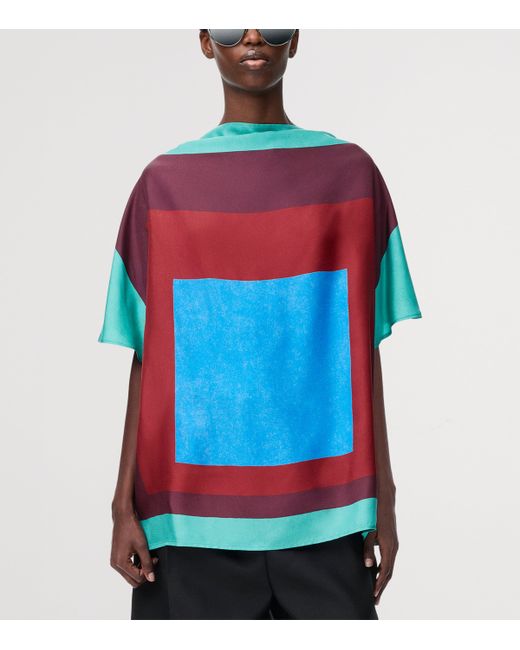 This silk T-shirt from loewe's latest release offers the lightweight, fluid drape of a scarf top, but with a more structured wearing experience. The geometric, colour-blocked design speaks of classic neckwear, alluding to loewe's subversive design philosophy.
