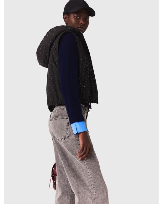 Maje polyester Sleeveless puffer jacket All-over rhinestone details Built-in hood This season, Maje is reinventing seasonal essentials to give your outfits a soft, modern feel. A statement piece that plays on the contrast between the comfort of quilting and the sparkle of rhinestones. This short, fitted, sleeveless puffer jacket with rhinestone details is perfect for layering. Wear with straight-leg faded jeans and a navy jumper, and accessorise with a matching cap and a mini fringed bag.. This