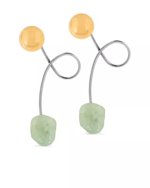 silver curved wire gold-tone sphere faceted stone post fastening These earrings come as a pair.