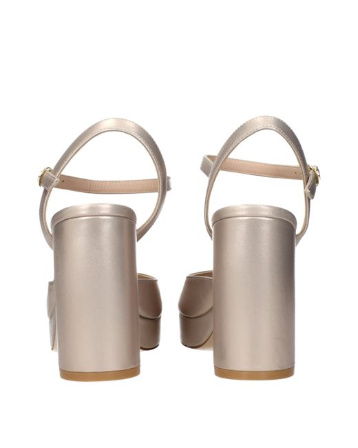 Description: The product with MPN DAYNAIIPLATFORMLIDSK308CHAMPAGNE and code F84409 leather in beige is a sandals designed by Stuart Weitzman. It has features like metallic effect.