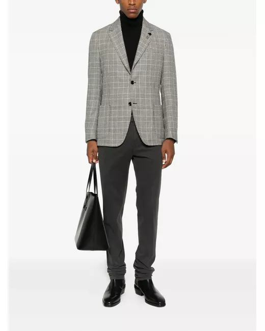 grey checked pattern two-button fastening patch pockets notched lapels long sleeves