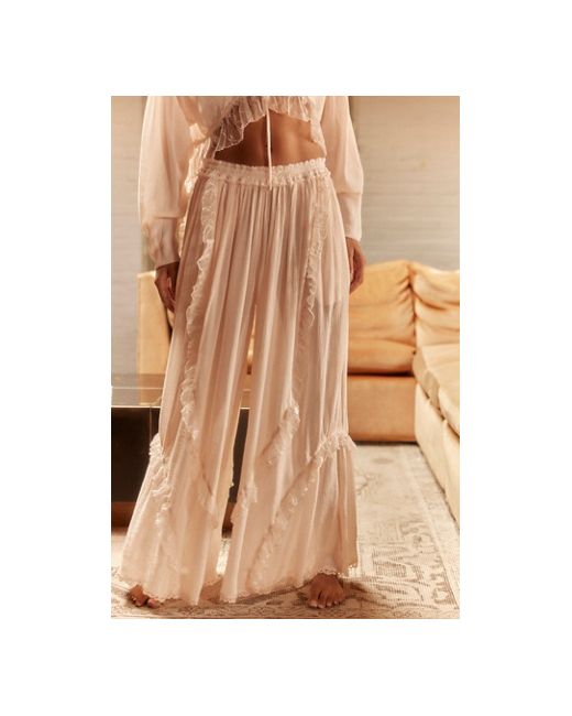 Romantic lace ruffles flow down these pants from Intimately, featuring an ultra-soft fabrication, a relaxed, billowy fit, and an elastic waistband for an alluring, wear-everywhere style. * Billowy, pull-on style * Elastic waistband * Mid-rise style * Ruffled lace details Ready For More Pants by Intimately at Free People in Angel Food, Size: XS