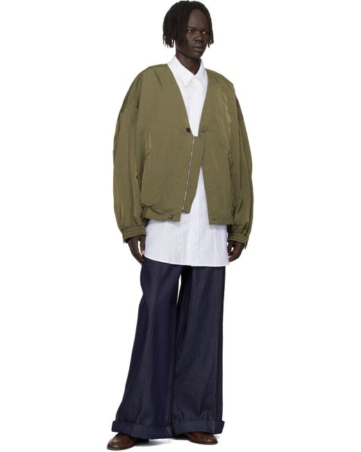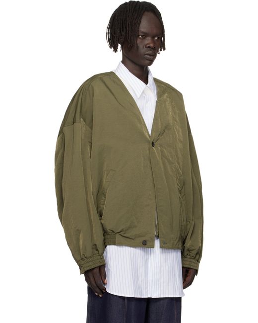 Crinkled nylon taffeta jacket. · V-neck · Button and concealed zip closure · Zip pockets at waist · Elasticized hem and cuffs · Dropped shoulders · Inverted box pleat at back · Welt pocket at interior Supplier color: Green