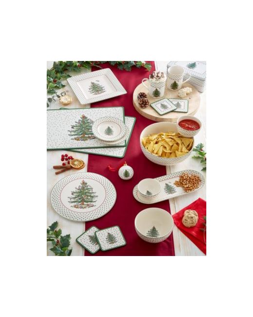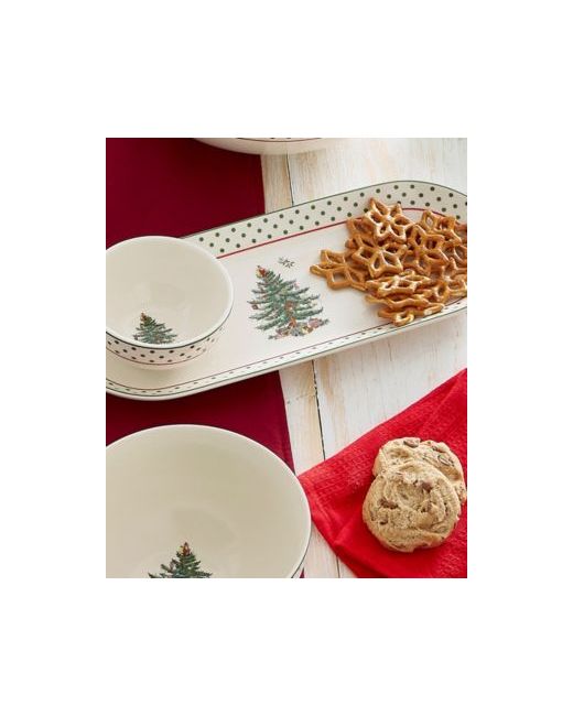 For everything from rice to ice cream, the playful polka dot border of the Christmas tree polka dot rice bowls pair delightfully with the Christmas tree collection.