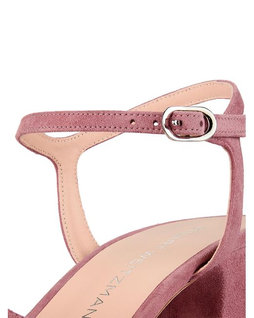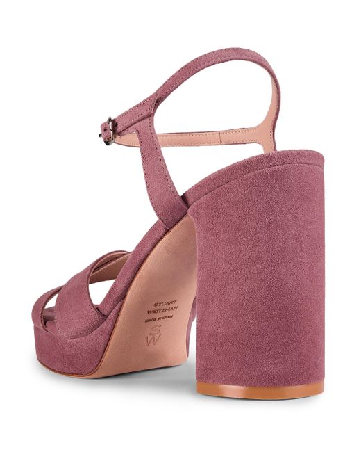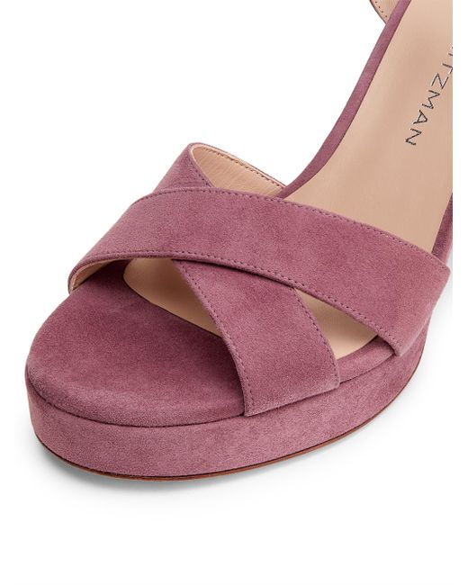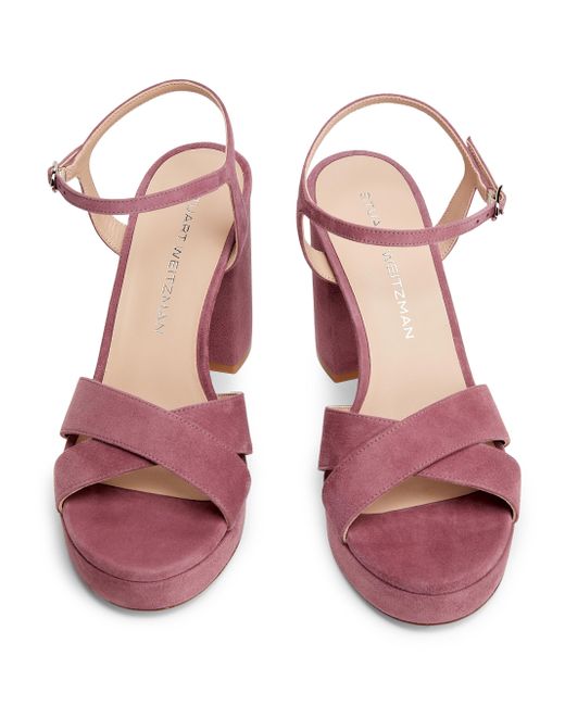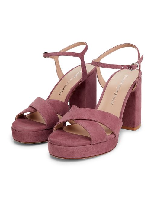 Crafted of suede, Stuart Weitzman's Dayna platform sandals feature a chunky heel and adjustable buckle closure. Made in Spain, this pair exemplifies the brand's commitment to creating classic silhouettes that balance both comfort and style. Open toe Buckle closure Suede upper Leather lining Leather/TPU sole Made in Spain SIZE Block heel: about 4" (100mm) Platform: about 0.8" (20mm) ABOUT THE BRAND Designer Stuart Weitzman started his career designing for his father's shoe company, before launching his own brand in 1986. Known for his glamorous pumps and over-the-knee boots, Weitzman has also incorporated unique materials in his designs, ranging from Lucite and wallpaper to cork, vinyl and even gold. Today, the label continues to create classic, feminine silhouettes that balance both comfort and style. Women's Shoes - Stuart Weitzman Wmn Shoe > Stuart Weitzman > Saks Fifth Avenue. Stuart Weitzman. Color: Dusty Berry. Size: 6.
