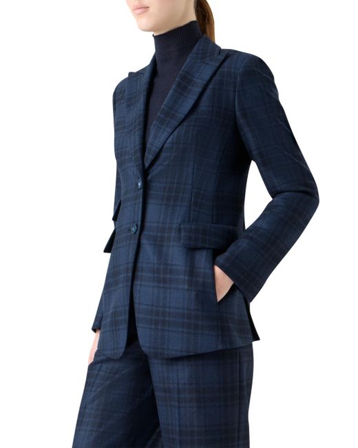 Crafted of double-faced wool, Akris' Percival blazer is designed with a checked pattern, two-button closure, and peak lapels. Peak lapels Long sleeves, button cuffs Chest welt pocket Front flap pockets Button-front closure 100% virgin wool Lining: 100% cupro Dry clean Made in Switzerland SIZE & FIT Model measurements: 5'10" tall Model is wearing a US size 4 ABOUT THE BRAND Founded in 1922 in St. Gallen, Switzerland, the name Akris was derived from founder Alice-Kriemler Schoch's initials. The entrepreneurial designer first started designing dotted aprons with intricate embroidery and soft cotton, which quickly grew into a full line of ready-to-wear. Almost 100 years later, the brand is now helmed by her grandsons. Creative Director Albert Kriemler continues to pay homage to his grandmother through polka-dot lined clothing, luxe fabrications and modern design-which now include sleek accessories like the cult-favorite AI trapezoidal handbag. Advanced European - Akris > Akris > Saks Fifth Avenue. Akris. Color: Denim Black. Size: 4.