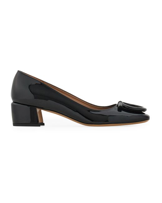 Crafted of patent leather, FERRAGAMO's Mara pumps are designed with an almond toe and a self-covered block heel. This pair, made in Italy, is elevated by the label's signature Gancini buckle on the vamp. Almond toe Slips on Patent leather upper Leather lining Leather sole Made in Italy SIZE Heel, about 1.5" (40 mm) Please note: This item runs large. ABOUT THE BRAND Italian designer Salvatore Ferragamo began his journey in 1927 in Italy with a vision of creating the world's most beautiful shoes. Since its inception, Ferragamo has expanded to include clothing, accessories and beauty under the creative direction of Maximilian Davis-who brings a minimalist-meets-maximalist aesthetic to the brand. Women's Shoes - Ferragamo Womens Shoes > Ferragamo > Saks Fifth Avenue. FERRAGAMO. Color: Nero. Size: 6.