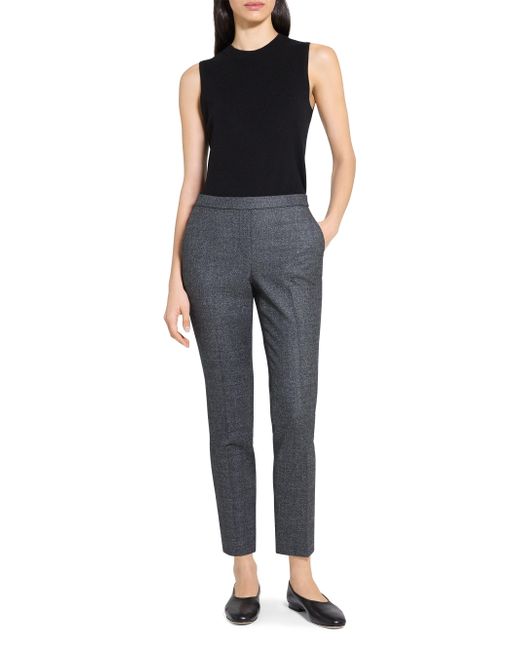 These Treeca pants from Theory, crafted of virgin wool, feature a marled flannel finish with pockets at the sides and back. Made with responsibly sourced virgin wool Elasticized waistband Side pockets Back welt pocket Pulls on 100% responsibly sourced virgin wool, exclusive of trim Lining: 100% responsibly sourced virgin wool, exclusive of trim Dry clean Imported SIZE & FIT Rise: about 16" Inseam: about 26" Leg opening: about 14" Model measurements: 5'10" tall Model is wearing a US size 4. Contemporary Sportswear - Theory Sportswear > Theory > Saks Fifth Avenue. Theory. Color: Pepper Multi. Size: 00.