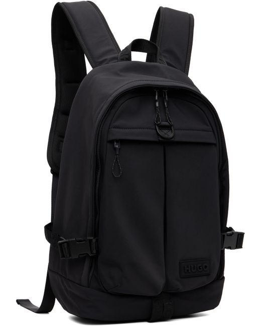 Taffeta backpack. · Fixed carry handle · Adjustable padded shoulder straps · Press-release sternum strap · D-ring and zip pocket at face · Rubberized logo patch at face · Press-release strap at sides · Padded panel at back face · Two-way zip closure · Laptop compartment · H18 x W14 x D6 Supplier color: Black