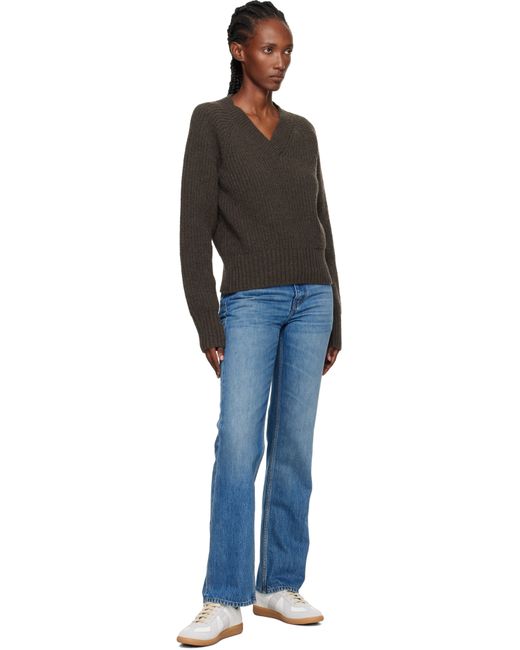 Rib-knit wool sweater. · V-neck · Raglan sleeves Supplier color: Dark brown