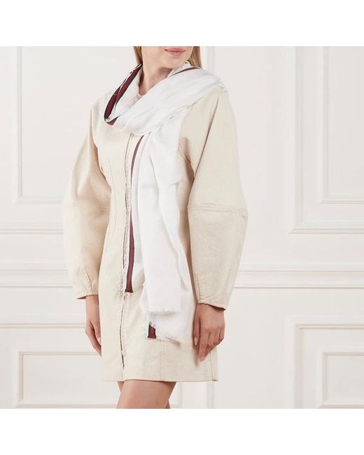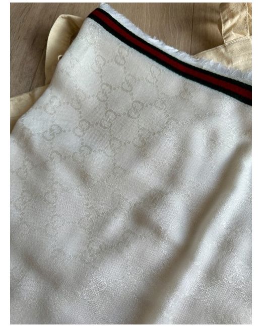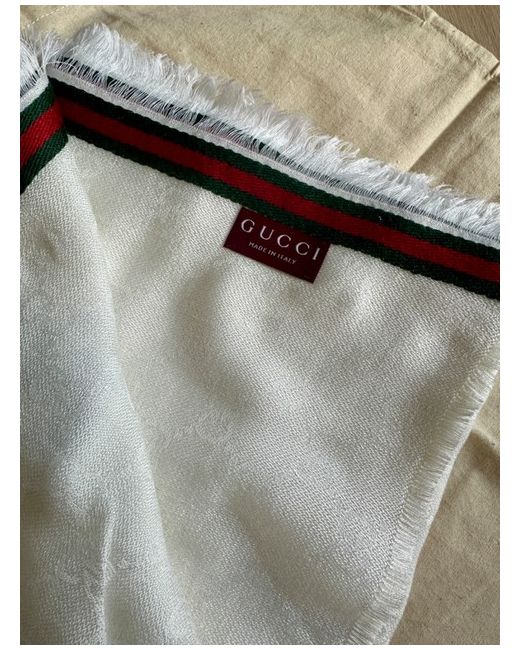 Gucci GG Silk and Cotton Scarf, White with GG monogram, 100% Authentic and New