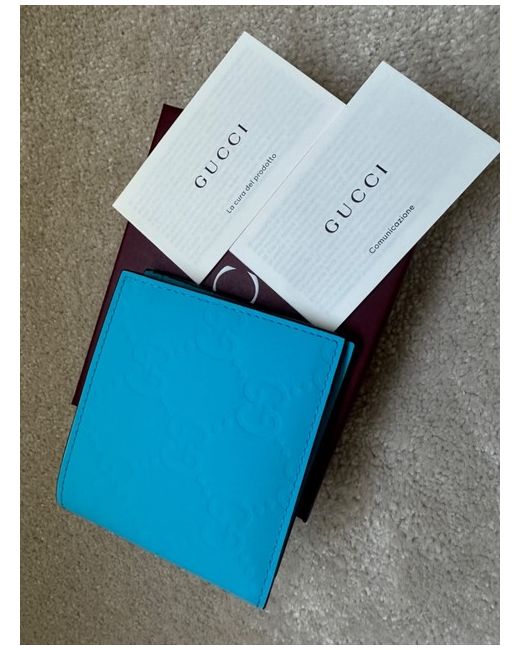Gucci Neon Blue Rubber-Effect Leather Bifold Wallet, GG embossed with 8 card slots and bill compartment, 100% Authentic and New with box, dust bag, tags