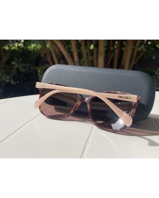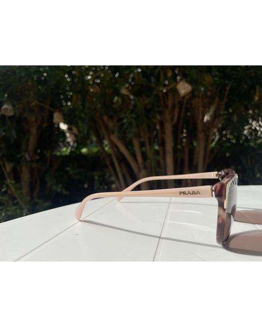 These unworn, authentic Prada cat-eye sunglasses are a stylish accessory for women. The frame is made of lightweight acetate in a pink hue, while the lenses are tinted brown polycarbonate. This designer piece features a unique animal print pattern, making it a fashionable choice for those looking for a statement eyewear piece. Perfect for adding a touch of luxury to any outfit. Unfortunately I do not have the Case, but they look brand new. DISCLAIMER: may have correction for poor eyesight.