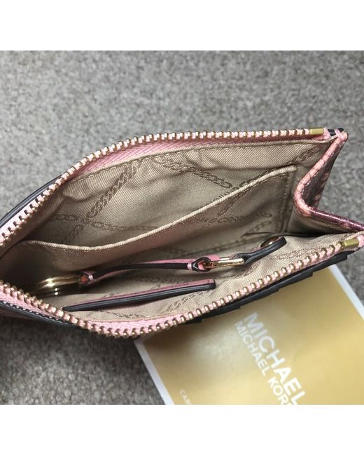 Women's Michael Kors Small Snakeskin Embossed Leather Keyring Card Holder/Zipped Purse