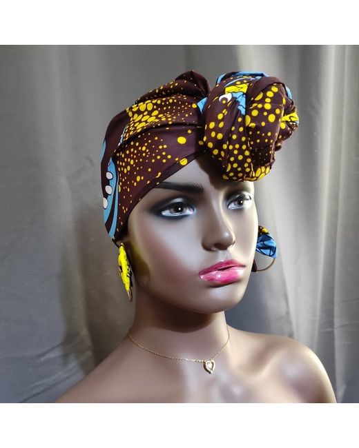 African Print Head tie Wrap Ankara Scarf Turban With Pouch