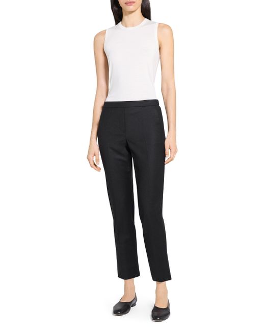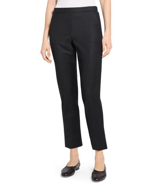 Theory's Trecca slim-leg crop trousers are crafted of wool and designed with side slash pockets. Okeo-Tex 100: Wool was independently tested and passed safety tests for the presence of harmful substances during parts of the textile formation process. Band waistband Side slash pockets Pulls on 100% wool Dry clean Imported SIZE & FIT Rise: about 9.5" Inseam: about 26" Model measurements: 5'10" tall Model is wearing a US size 4 ABOUT THE BRAND In 2000, founders Andrew Rosen and Elie Tahari launched Theory with a focus on innovative, comfortable stretch pants for women. Since then, the New York-based brand has become well-known for its mastery of polished, well-tailored separates for women and men. Contemporary Sportswear - Theory Sportswear > Theory > Saks Fifth Avenue. Theory. Color: Black. Size: 0.