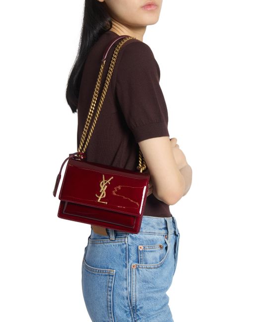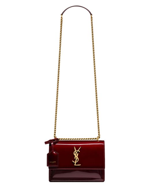 Small flap bag lined in tonal leather, decorated with the Cassandre and a detachable leather charm. This functional piece is structured with two main compartments and a front pocket. Featuring a sliding leather-and-chain strap, the bag may be worn two ways. Leather lining Bronze-tone hardware Magnetic snap closure One flat pocket at the back Dimensions: 7.5'' x 5.1'' x 3.1'' 90% Calfskin Leather, 10% Metal Made in Italy. Lsd Handbags - Saint Laurent > Saint Laurent > Saks Fifth Avenue. Saint Laurent. Color: Gloss Burgundy.