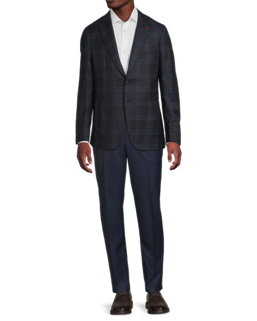Isaia's Delain jacket is crafted of wool and features a subtle windowpane plaid pattern. The tailored style is finished with a notch lapel and patch pockets. Notch lapel Long sleeves, button cuffs Chest welt pocket, side patch pockets Two-button closure 100% wool Dry clean Made in Italy SIZE & FIT Model measurements: 6'2" tall, 40" chest, 31" waist Model is wearing a US size 40R ABOUT THE BRAND Since its founding in 1920, Isaia has been among the storied tailoring houses based in Naples, Italy. The family business began as a fabric purveyor, and more than a century later, Isaia is renowned for its signature unstructured jackets that perfectly embody the Neapolitan ethos of easy luxury. Men Luxury Coll - Isaia > Isaia > Saks Fifth Avenue. Isaia. Color: Blue Medium. Size: 40.