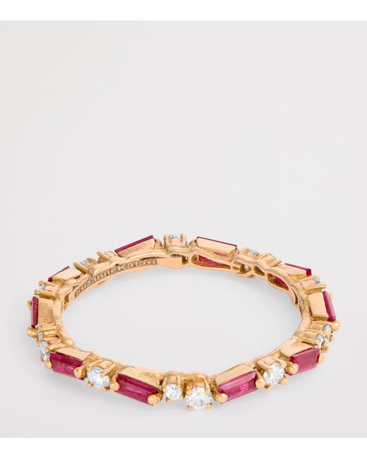 Understated yet striking, Suzanne Kalan's Thin Mix collection is designed to be comfortably stacked so that you can create your own unique look. Detailed with baguette-cut rubies and round white diamonds, this rose gold ring acts as a more minimalist rendition of Kalan's Classic collections.