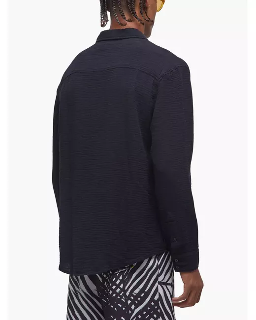 black cotton concealed front fastening classic collar long sleeves buttoned cuffs curved hem