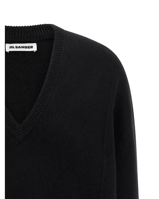 black V-neck wool cashmere blend long sleeves ribbed hem