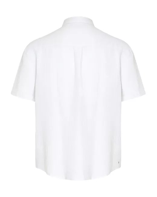 white cotton front button fastening classic collar short sleeves curved hem