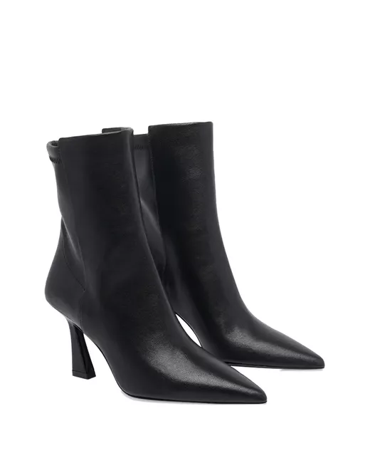 black leather upper pointed toe elasticised shaft high heel slip-on design