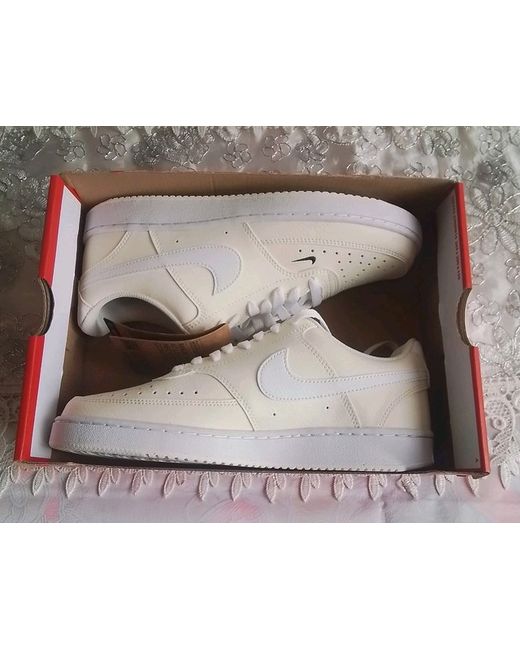 Nike Court Vision Low Trainers Colour: White/Pale Ivory-Black Style: FV9952-100 Size: UK 6 / US 8.5 / EU 40 Condition: Brand new with original box. PLEASE NOTE THE BOX IS LIDLESS FRESH OFF THE COURT. In love with the classic look of '80s basketball but have a thing for the fast-paced culture of today's game? Meet the Nike Court Vision Low Next Nature. Made from at least 20% recycled materials by weight, its crisp upper and stitched overlays are inspired by the days of hook-shots and tube socks. The padded collar and rubber outsole bring comfort and traction for your world.
