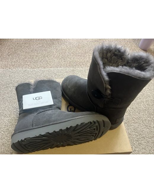 The UGG Australia Bailey Button II Women's Boots in Grey, UK size 5.5, are a stylish and comfortable choice for women. With a round toe shape and made with sheepskin lining and faux fur insole, these boots provide warmth and comfort. The suede upper material adds durability and a sleek look, while the button closure adds a trendy touch. These boots are part of the UGG Bailey product line, ensuring quality and fashion in every pair. Ideal for colder weather, these UGG boots are a must-have for any woman's wardrobe. These were Bought as a present but never been worn and are in perfect condition. Any questions please send me a message and I will help as much as possible