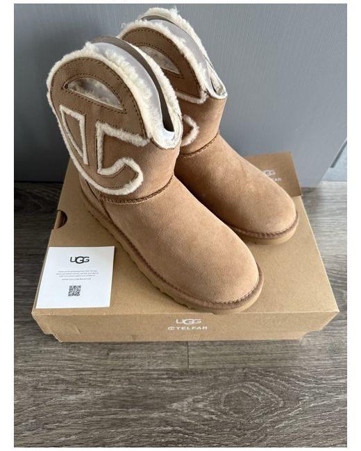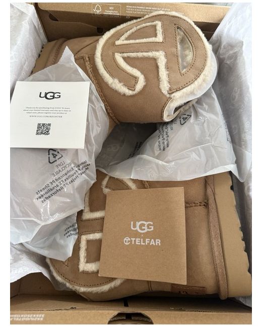 UGG, founded in 1978, is celebrated for its premium sheepskin footwear. Telfar, launched in 2005 by Telfar Clemens, is known for bold, unisex designs. This exclusive collaboration blends UGG’s comfort with Telfar’s modern style. Crafted from shearling and suede, these boots are perfect for cold weather, casual wear, and standout outfits. Size 5/38 Retail Price: £260 Authentic Limited edition with dust bag in brand new box.