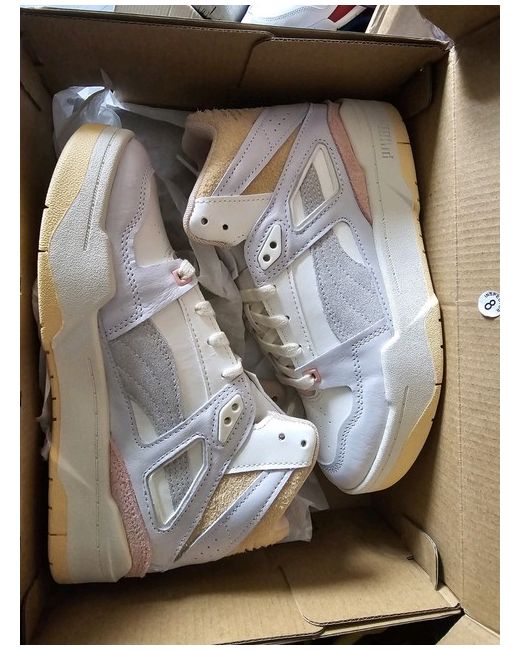 The product is a pair of Puma high-top trainers for women in UK size 3.5. These multicoloured sneakers feature a lace-up closure and rubber cleats, providing comfort for casual occasions. The shoes are not customised and have a standard shoe width, suitable for everyday wear. Perfect for adding a stylish and sporty touch to any outfit, these Puma trainers are a must-have for any woman's wardrobe.