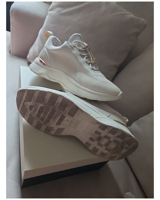 The Kurt Geiger women's trainers in size 6 are stylish sneakers in a chic beige colour. With a comfortable and trendy design, these trainers are perfect for active women on the go. Made by the renowned brand Kurt Geiger, known for their high-quality footwear, these trainers combine fashion and functionality to elevate your everyday look. still with box and packaging also still have the receipt. only worn once couple marks just needs a wipe