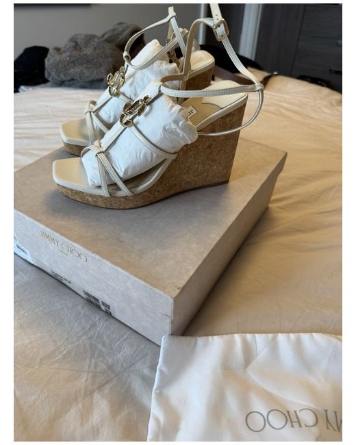 New Jimmy choos wedges, slight mark on bottom where tried on and slight pull on leather at the heel where sale sticker was. Other than that no faults. Comes with box & dust bags RRP £575