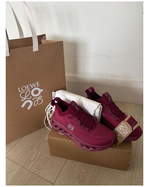 The Cloudtilt LOEWE trainers are a stylish and trendy choice for women who want to make a statement with their footwear. In a bold beet red colour, these sneakers by Loewe are perfect for adding a pop of colour to any outfit. With a UK shoe size of 4, these trainers are designed for comfort and fashion-forward style, making them a versatile addition to any woman's wardrobe. Received as a gift and never worn.