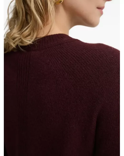 burgundy long sleeves crew neck cashmere ribbed hem ribbed cuffs
