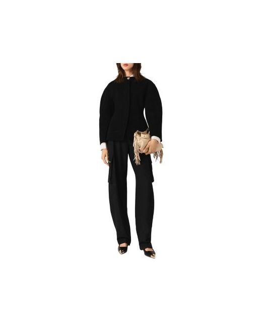 Maje's seasonal wardrobe unveils structured pieces with enveloping fabrics and impeccable cuts. This black jacket is clean and sophisticated, with a sculptural drape that subtly accentuates the waist. Its soft texture offers comfort and warmth all season long, while the jewelry-style button adds a precious touch.