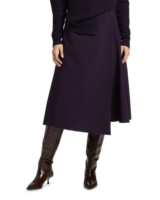 Crafted of Italian virgin wool, Michael Kors Collection's draped skirt elevates the midi-length design with a classic wrap silhouette. Wrap waist Side button closure 100% virgin wool Dry clean Made in Italy SIZE & FIT Model measurements: 5'10" tall Model is wearing a US size 4 ABOUT THE BRAND Since launching his eponymous brand in 1981, Michael Kors has been taking the fashion world by storm with his luxury accessories and ready-to-wear. With multiple labels under his name, Kors' designs remain glamorous and effortless-and now include jewelry, handbags, shoes and eyewear. Designer Lifestyle - Michael Kors > Michael Kors Collection > Saks Fifth Avenue. Michael Kors Collection. Color: Aubergine. Size: 0.