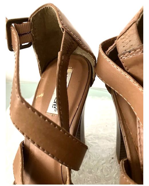 The shoes have never been worn, but the interior lining has peeled a bit in a few areas. Please take a look at the photos.