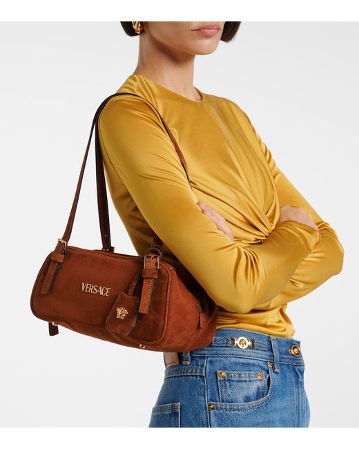 Versace Tag Suede Shoulder Bag |