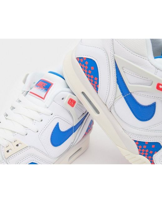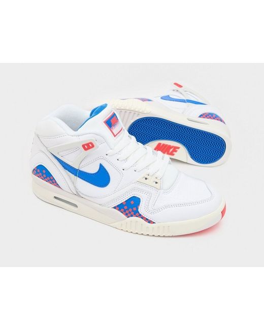 The Nike Air Tech Challenge 2 in white and royal blue laser is a stylish and sporty trainer in UK size 9. This mid-top sneaker features a lace-up closure and leather upper material, with a fabric lining for comfort. It belongs to the Nike Air Tech product line and is perfect for the spring season. The design is clean and modern, with the signature Nike branding adding a touch of style to any outfit. Made in China, this shoe is a great choice for men looking for a versatile and trendy addition to their collection.Brand new and unused