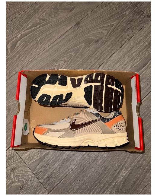 The Nike Zoom Vomero 5 is a men's sneaker in beige, featuring a lace-up closure and a low-top shoe shaft style. This trainer from Nike's Air Zoom line is designed for comfort and performance, with cushioning, breathability, and a rubber outsole for traction. Ideal for various activities such as activewear and casual wear, the shoe is suitable for running, walking, and gym training. Its retro athleisure theme and mesh upper material make it a stylish and functional choice for everyday use in all seasons.