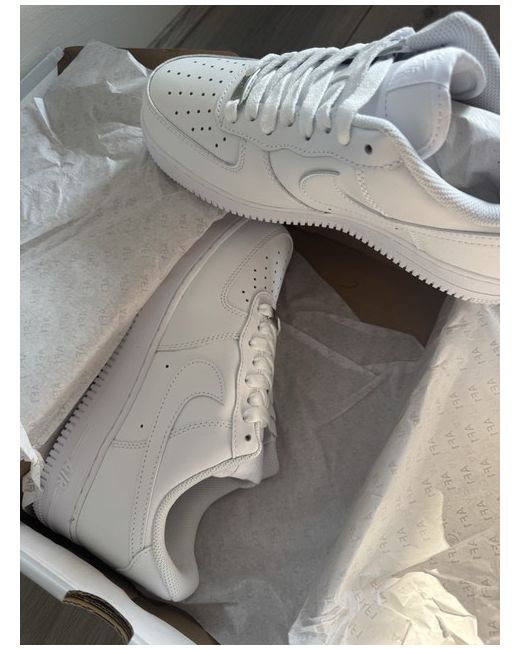 The Nike Air Force 1 Men's Trainers in size 8 UK are stylish and comfortable sneakers perfect for casual occasions. These white trainers feature a low top shaft style with a lace-up closure, rubber outsole material, and standard shoe width. Made with leather upper material and designed by Nike, these trainers are a popular choice for men looking for a versatile and on-trend footwear option. The Nike Air Force 1 model is a classic sneaker with a comfortable design, making it a great option for the summer season.