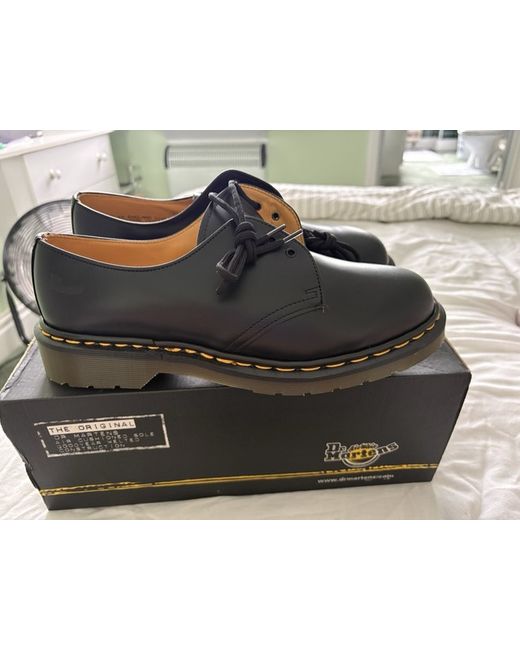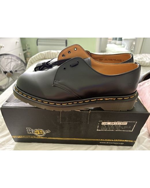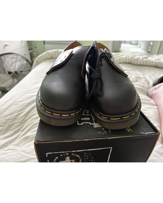 These Men’s Black Dr Martens shoes in size 9 are classic and stylish with a round toe shape and lace-up closure. Made from leather, they feature a standard shoe width and a durable rubber outsole, perfect for casual occasions. The 1461 style from Dr. Martens is a timeless choice that exudes a sense of edgy sophistication. With no pattern or vintage detailing, these shoes are versatile and easy to wear, making them a wardrobe staple for any man looking for a mix of comfort and style.