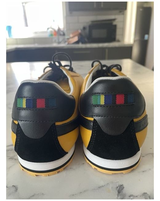 Brand new , never been worn . Please see photographs . Unfortunately I have no box . Yellow leather with suede Black laces . Free 1st class special delivery Sent out same day Royal Mail
