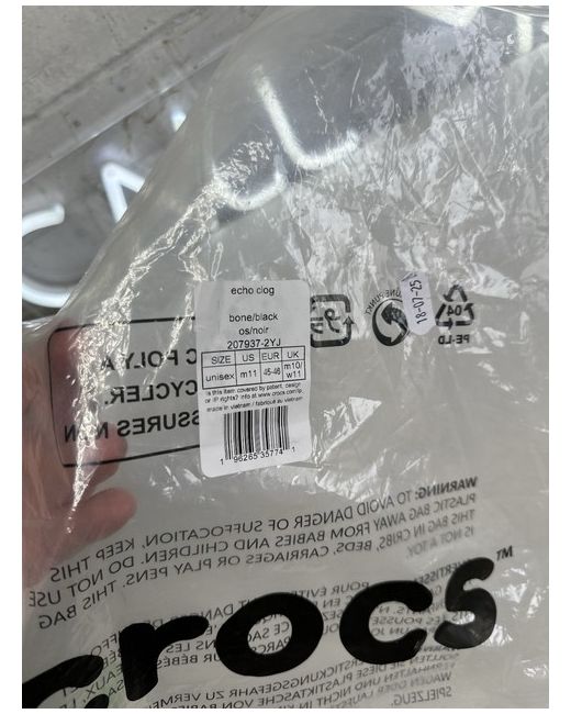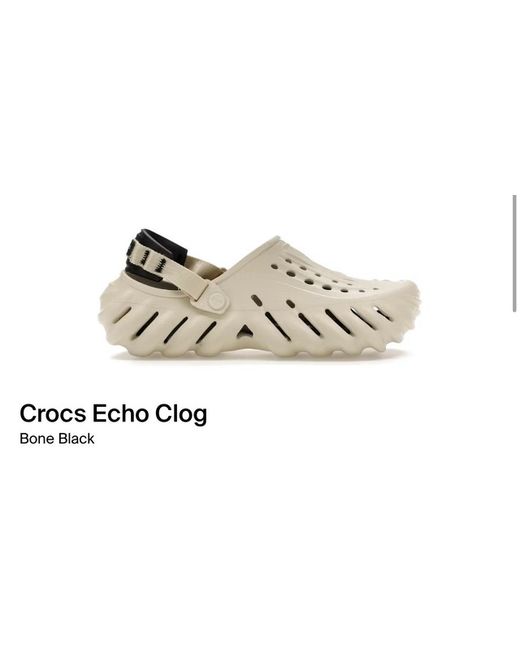 Step into style and comfort with the Crocs Echo Clog in Bone/Black – one of the most sought-after Crocs silhouettes. • Model: Echo Clog. • Colourway: Bone / Black. • Size: UK 10 / EU 45-46 / US M11. • Pivoting heel strap for a secure fit.
