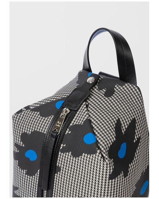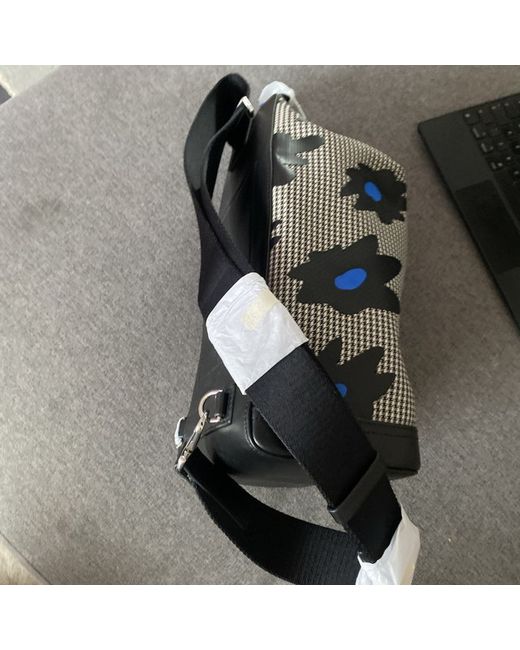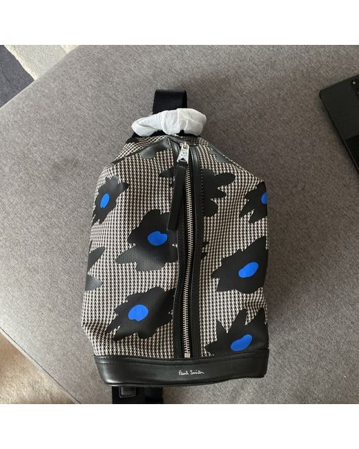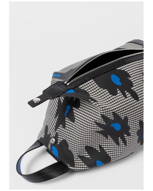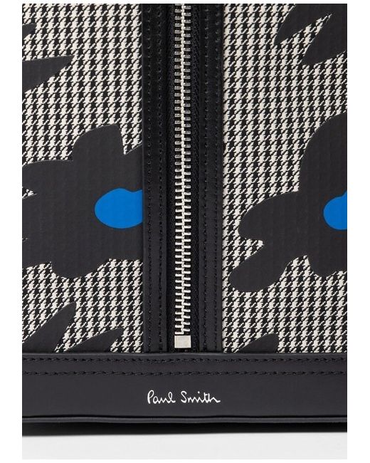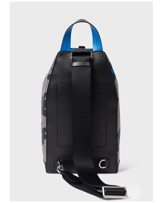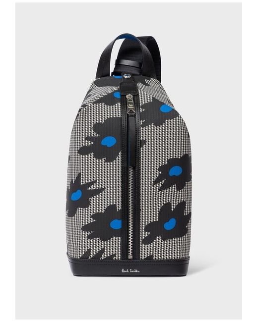 Paul Smith Black & White Sling Messenger Bag Plain-woven and buffed leather messenger bag in black and white. Houndstooth and floral pattern throughout. - Fixed carry handle - Adjustable and detachable shoulder strap - Silver-tone logo stamp at face - Zip closure - Patch pocket at interior - Twill lining - Logo-engraved silver-tone hardware - H13 x W7 x D5.5 in Supplier color: Multicolor